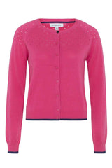Modern yet timeless, the Klara Cardigan by Emily and Fin pairs a feminine fit complete with an intricate pointelle design at the yoke, with a bright pop of colour ? in this case, a lively bright pink. The soft cotton viscose blend is perfect for combatting a summer evening breeze, and the semi-fitted round neck means it can be thrown over any outfit to get that chic summer layering look. Designed in UK.