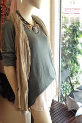 This dark gray blue top is always number one on your list of wardrobe staples! Complete with a high-low hem and a relaxed, full length sleeve, this soft jersey top provides the foundation for countless stylish ensembles. Made in Italy!
