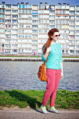 Feeling the warmness of Spring in this beautiful soft blue sweater (with dotty print and pompons!) by Pepaloves. If you don't limit yourself and want to have fun with clothes, play mixing colours. You can even combine this sweater with our lovely bow front Midi dress for a girly look for cooler days just like what Coury from Fancy Treehouse did. Designed with love in Spain. Blogger favourite - as seen on Coury of style blog Fancy Treehouse Lana of style blog Lana Red Studio