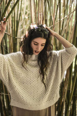 Cropped oversized sweater with wide raglong sleeve and funnel neck. Made from a poen waffle weaved fabric. Designed in Australia. Blogger Favourite - as seen on Elle of style blog Elle-May Leckenby.