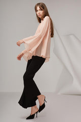 - Long flared sheer sleeves