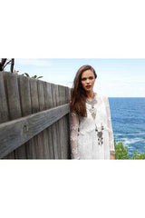 The Wallflower Tunic Dress with Slip features a delicate mesh veiling with embroidered floral motifs. The ethereal design is cinched around the waistline for an ultra-feminine touch.