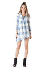 This denim shirt dress has been crafted from a premium cotton fabric. Details include: