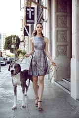 This A-line tank dress has been crafted from an easy-to-care metallic poly fabric. The details include: