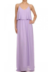 It is immediately decided as you flutter by in this lilac maxi dress - you are the most entrancing gal in the room! This gown's open back showcases definitive loveliness with cross in back and ruffle flounce overlay at neckline.