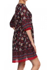 For your upcoming tour of the collection by Everly, you choose this navy shift dress to showcase your artistic spirit. Tile-print stripes frame the vivid floral print on this laid-back shifte dress, slate blue, cocoa brown, and cabernet hues from the blooms and angular trim of this flowy, 3/4-sleeved frock, giving off a vibe as alluring as your curated know-how. Made with love in the U.S.A. Blogger favourite - as seen on Chriselle of style blog The Chriselle Factor