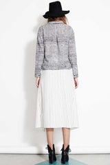 ISLA OFFLINE SKIRT from The Source Collection. Who said that you couldn?t have the best of both worlds? This beautiful pin stripe skirt combines the elegant proportions of the midi skirt with the confident lines of the pencil skirt that crops just above the knee. The skirt is incredibly comfortable and easy to wear, with just a knee length front panel and overlay skirt. Lined to just above the knee. Concealed side zip and hook closure.