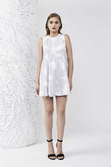 The Sun Up Mini Dress by Keepsake is a shift style dress with a high rounded neckline, a tubular neckband and a back invisible zip in a lightweight textured fabric with lining and its exclusive brush stroke print.