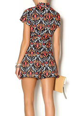 This fabulous printed playsuit features a high neck, pockets and jacquard texture. it will make for an easy transition into fall with the orange, black and white color palette. Pair it with wedges or flats for unique daytime look then slip on your favorite heels and go from day to night. Blogger favourite - as seen on Amy of style blog A Fashion Nerd