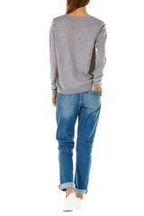 Spread a little happiness in this joyful little sweater by Sugarhill Boutique! Featuring a slogan intarsia design in soft coral on a grey marl lightweight sweater. Designed in UK. Blogger favourite - as seen on Coury of style blog Fancy Treehouse.