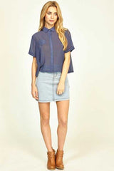 This boxy, pleated back blouse is a modern spring update to your wardrobe. Constructed from semi sheer chiffon in chalky, dusky blue this gorgeous blouse looks lovely over high waisted denim or layered over a simple LBD. To add to the modern feel the buttons are hidden to create a streamlined look while the playful heart pocket keeps the look feminine and fun. Blogger Favourite - As seen on Toni os style blog FASHION YOUR SEATBELTS / teen blogger Tolly Dolly Posh Fashion