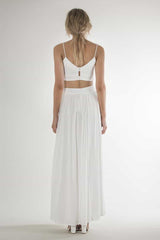 超柔軟人造絲底座,棉飾邊。高腰超長半身裙,配有深低吊口袋、前開衩和貼花飾邊細節。