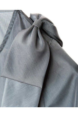 這款絲質石板色襯衫的肩部飾有漂亮的蝴蝶結,白色梭織袖口。這款蝴蝶結襯衫百搭且輕盈,可將其塞入百褶裙中或搭配我們的黑色天鵝絨 Dormacy 連身裙。一件值得信賴的襯衫,幾乎可以搭配任何衣服! 部落客最愛 - 正如時尚部落格 The Clothes Horse 的 Rebecca 所見