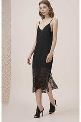 Keepsake Lovers 中長洋裝採用經典襯裙款式,採用輕質透明布料製成,飾有動物自體斑點印花。採用 V 領、細肩帶和 V 字背。衣身和側邊開衩採用寬鬆剪裁。襯裡至大腿上部。搭配您最愛的高跟鞋,打造完美造型。澳洲設計。