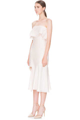 Keepsake 品牌的 Remind Me 洋裝採用輕盈紋理布料製成,風格有趣又性感。採用荷葉邊緊身胸衣和開衩荷葉邊下擺。搭配緊身裙,背部隱形拉鍊開合。專為修身剪裁而設計。全襯裡。搭配高跟鞋打造晚裝造型。澳洲設計。