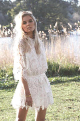 閉幕式洋裝是完美別緻且獨特的單品,適合盛裝打扮或慵懶的星期日。這款無袖迷你洋裝採用全身馬德拉刺繡蕾絲罩層,優雅飄逸。它採用喇叭袖和臀部坐式腰部繫帶,打造出柔和的喇叭裙。露背和扇形下擺增強了這款洋裝的氣質。身體全襯裡。澳洲設計。