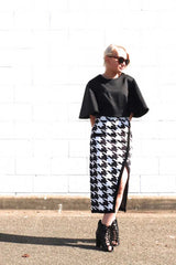 Elliatt New Heights 半身裙採用花呢布料和加大的千鳥格紋,可為任何服裝增添光彩。正麵包形成不對稱的開叉,恰到好處地露出肌膚。 部落客最愛 - 如上所示 時尚部落格 Syne of Style 的 Ashley 時尚部落格 The Game Changer 的 Nikki