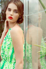 這款性感印花洋裝採用 100% 聚酯纖維製成。詳細資訊包括: