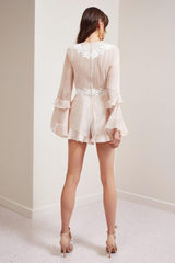 無論什麼場合,Keepsake the Label 總是能提供讓您看起來和感覺更特別的洋裝。這款精緻的 All Mine 連身褲的靈感源自於高級時裝的輪廓和飾面,其領口和腰圍處飾有花卉貼花,勾勒出曼妙的身材。我們喜歡透明的褶皺喬其紗袖子以及褶邊袖口和下擺。澳洲設計。