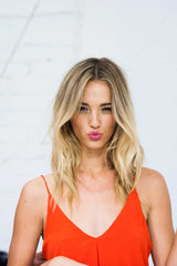 您答應在派對上以充滿活力的時尚造型亮相,當您穿著 May the Label 的亮辣椒紅色絲綢連衣裙抵達時,您的朋友們一定會對您的時尚真理感到驚嘆。深V領口,細肩帶在背後交叉,不對稱裙擺垂至膝蓋以下,雪紡襯裡,這款雞尾酒禮服非常漂亮!澳洲設計。