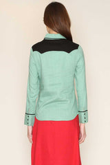 在激動人心的排練結束後,您穿上這件 Pepaloves 襯衫,與其他音樂家一起喝一杯。你的衣櫃裡應該有一件這樣的襯衫;它很有女人味,涼爽又舒適!復古淡綠色襯衫,肩部和紐帶形成對比色,正面和袖口飾有飾邊。在西班牙充滿愛的設計。 部落客最愛 - 如上所示 堅不可摧工廠的模型拍攝