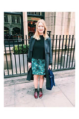 經典修身鬱金香形半身裙,寬弧形腰帶,正面和背面均帶有自滾邊細節。前袋隱藏在深褶皺中。全襯裡,背面中央拉鍊固定。 正如《艾蜜莉與芬》中的愛麗絲所見。
