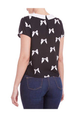 穿上這款柔和的 Elaine 上衣,展現六十年代的潮流,結合了經典的輪廓、復古的衣領細節和漂亮的蝴蝶結印花。非常適合搭配牛仔褲和踝靴,或疊穿在圍裙或直筒洋裝下。