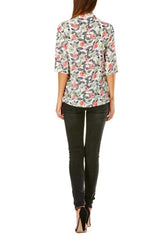 Poppy Lux 這款圖案印花上衣採用梭織布料製成,時尚漏斗領上衣採用柔和的綠色、珊瑚色和黑色多種草圖植物印花,搭配迷人的半袖。英國設計。
