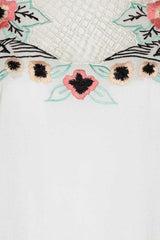 Nixie Cutwork Embro 上衣採用經典 Sugarhill 概念之一,是一款具有裝飾性、女性化的夏季必備單品。具有扇形下擺、鏤空鑲板和裝飾性鳥花刺繡,顏色為柔和的水綠色、珊瑚色和黑底白字。英國設計。