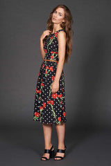 Poppy Lux 的Geneva 中長連身裙飾有俏皮的圓點和花卉圖案,非常可愛,是我們夏季的必備單品。採用腰部合身上衣,搭配人造皮革腰帶和全中長裙。英國設計。