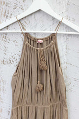 這款掛脖洋裝採用輕盈布料製成。義大利製造。