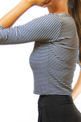 你的暗戀對像以為你們是一起為當地球隊加油,所以想像一下,當你穿著這件黑白條紋短上衣從溜冰場向看台揮手時,你會在那些眼神中發現多麼驚訝的感覺!具有運動風格、3/4 袖、船領和短款。搭配高腰短褲和圓點襪子,這款上衣將向場邊的甜心展示您的勇氣!義大利製造。