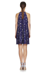 Sierra 系列的 TALULAH RTW 霧霾花邊直筒洋裝。這款優雅的直筒洋裝採用海軍藍花邊蕾絲精心製作而成,剪裁打造出酷炫的梯形輪廓。全襯裡,提供最佳的覆蓋範圍和舒適度。後部配有隱藏式拉鍊和鉤扣。澳洲設計。