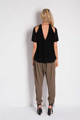 雙折邊上衣,肩部鏤空細節,半透明喬其紗底料製成。全襯裡。模特兒所穿尺寸為 S。