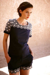 穿上這款易於穿著、手感柔軟的棉質上衣,展現今年夏天的時尚風格。這款上衣的領口和袖子上飾有花卉刺繡細節,將成為您度假行李箱的完美補充。搭配牛仔短褲,打造完美的兩件式服裝。