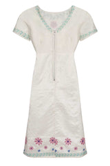 推出 Frock and Frill 全新奶油色中長連身裙,恰逢節日季節。這款波西米亞別緻洋裝的衣身和下擺採用花卉刺繡設計。採用短袖和階梯式下擺,打造獨特的外觀。它採用絲質面料製成,非常精美。搭配裸色高跟鞋和配套手拿包。這是一款完美的性感外出洋裝!
