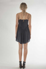 超柔軟人造絲底布,棉質飾邊,低胸迷你鞦韆連身裙,飾有貼花飾邊肩帶。全襯裡。後部紐扣開合,有鎖孔切口。
